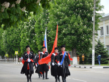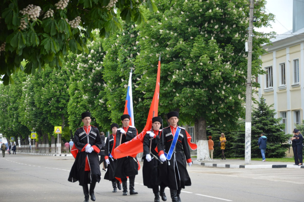 Знамя Победы торжественно внесли курсанты казачьих клубов – это дало начало митингу.