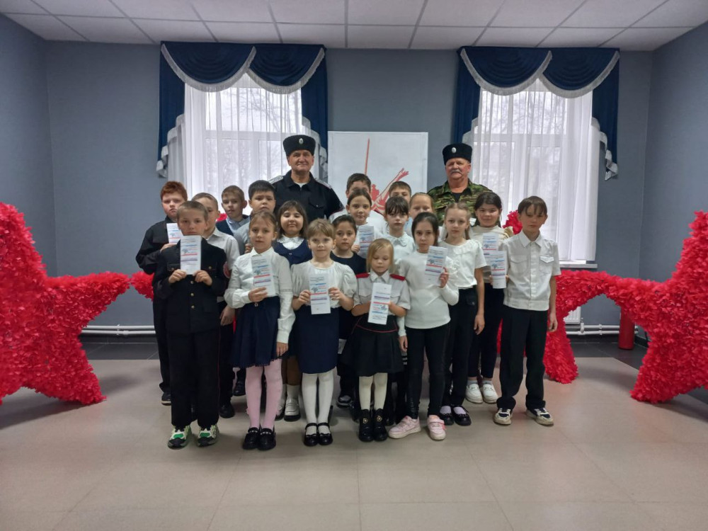 В рамках празднования Дня воссоединения Крыма с Российской Федерацией члены правления ХКО Пушкинское провели для казачат  урок мужества.